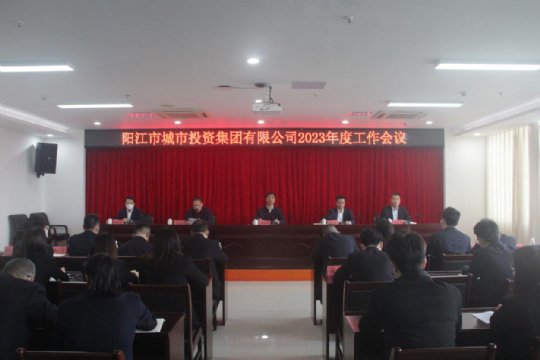 1月29日,市城投集團在六樓603會議室召開2024年度工作會議。集團領導班子全體成員出席會議。集團黨委副書記、副董事長、總經理張勛武作2023年生產經營工作報告并作總結講話。集團黨委委員、副董事長何健榮宣讀集團20...